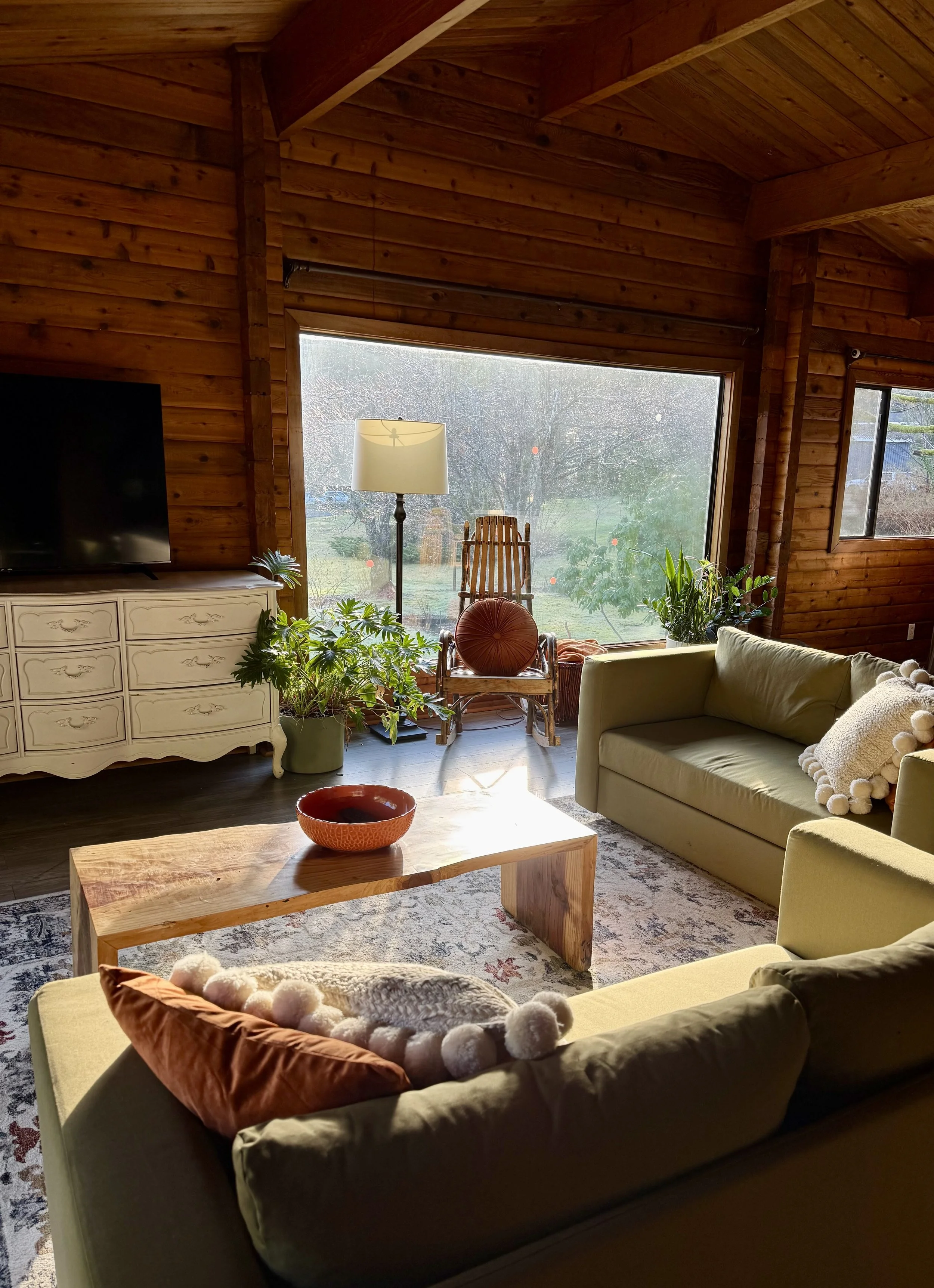 A welcoming West Coast lodge with classic cedar-log charm and a comfortable, thoughtfully furnished interior. With open gathering spaces, a well-equipped kitchen, lovely gardens, and room for up to 10 guests, it’s an ideal retreat for families and small groups.